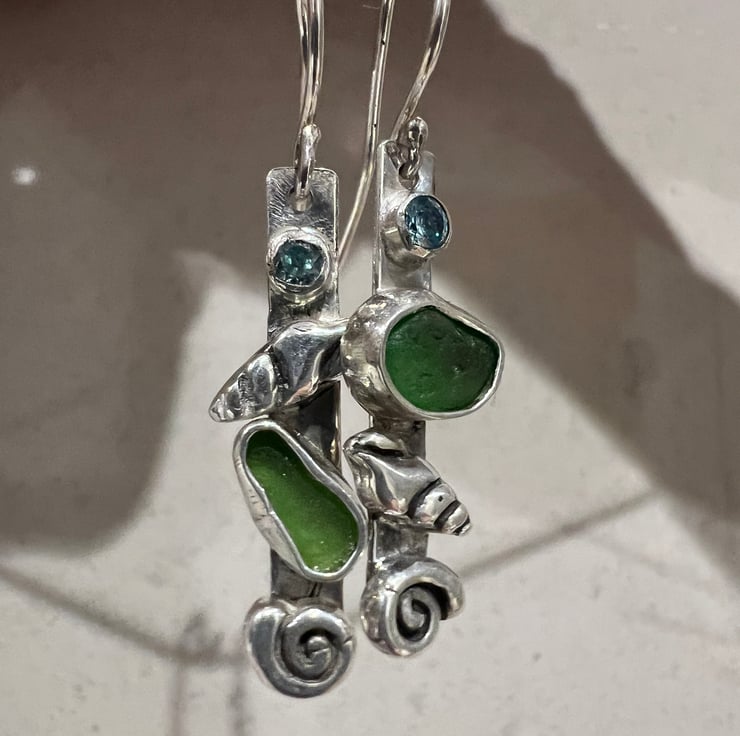 The sea glass was found on Port Gaverne beach in October 2024 and the embellishments are made from fine silver.