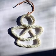 This knitted Bog Pimpernel comes tucked into a mini log slice and is ready to display immediately. It is a beautiful addition to your home and can serve as a reminder of the beauty of Shetland.