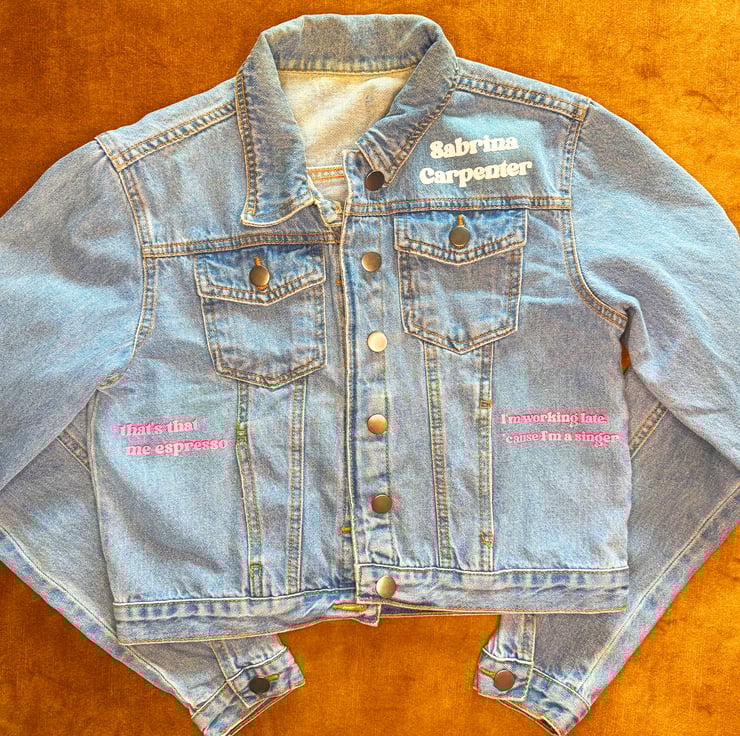 Customised Sabrina Carpenter jacket, perfect for her 'Short n' Sweet' World Tour.