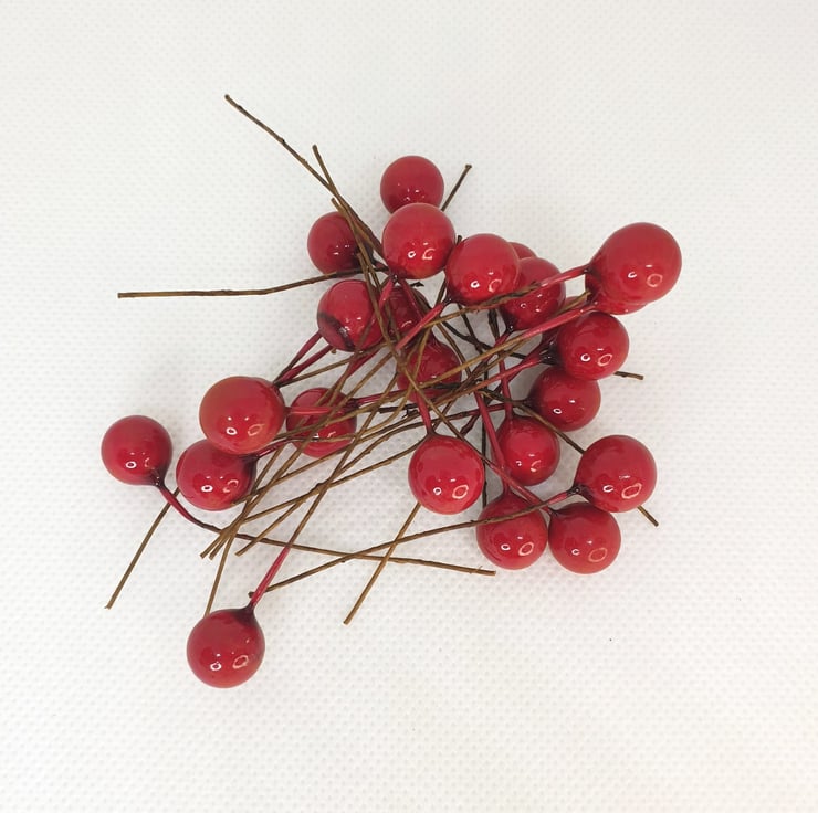 20 Pcs 10mm x 60mm Red Wired Berry Stems Artificial Berry Christmas Supplies