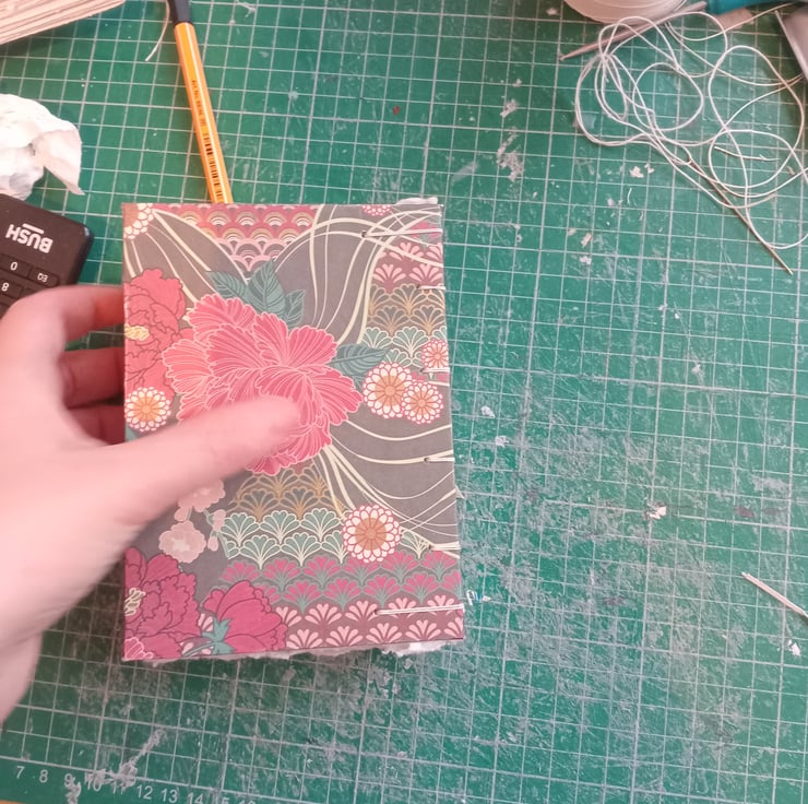 Watercolour sketchbook with cotton rag paper. Coptic stitch and printed floral design cover. A6 portrait