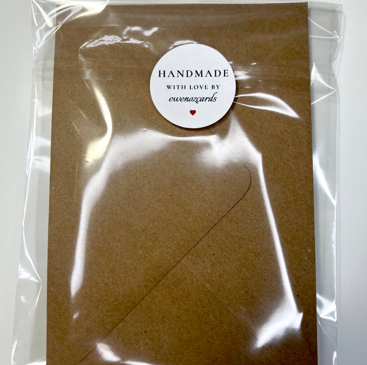 Card comes with envelope all packed in foil and sealed with personalised label.