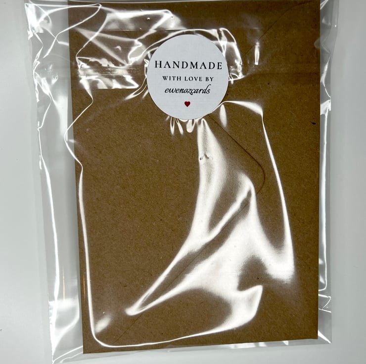 Card comes with envelope all packed in foil and sealed with personalised label.