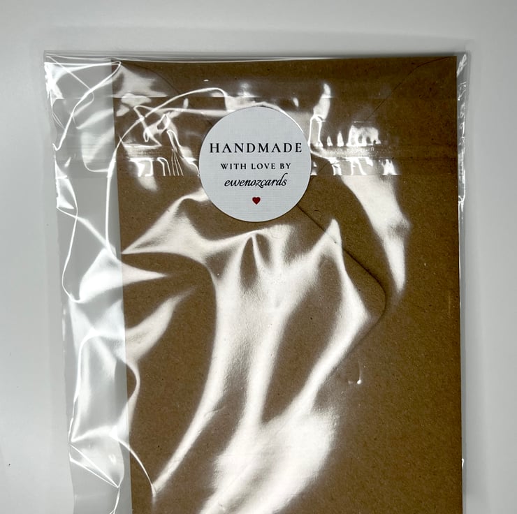 Card comes with envelope all packed in foil and sealed with personalised label.