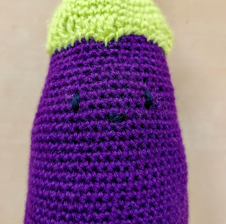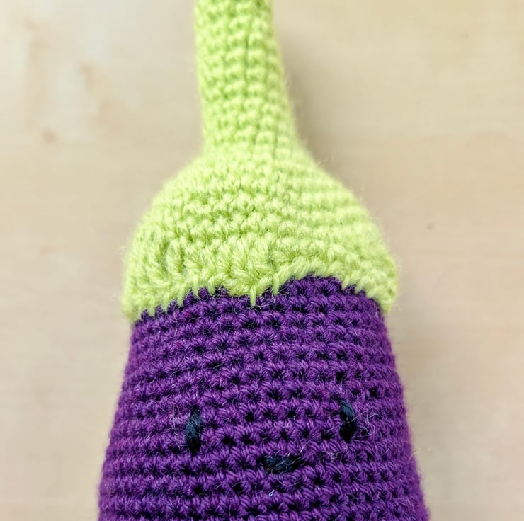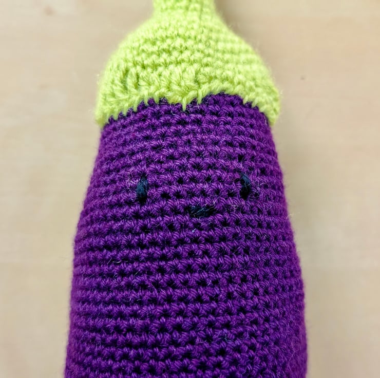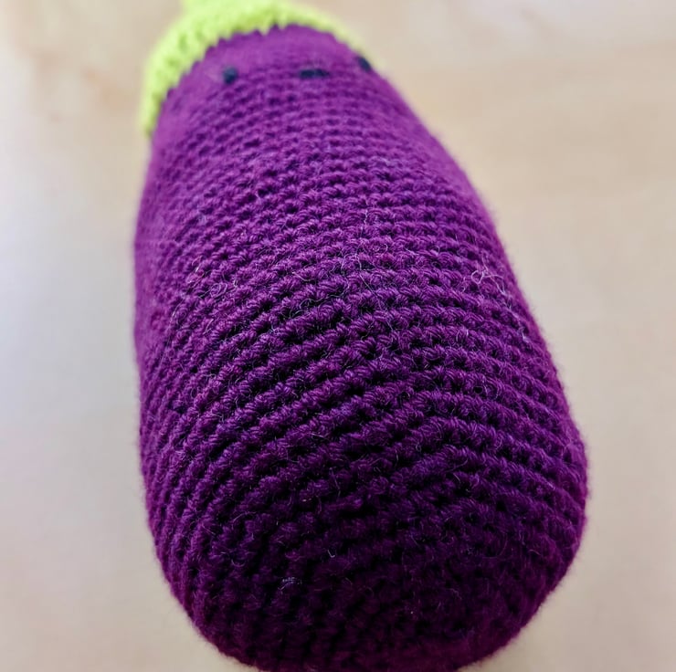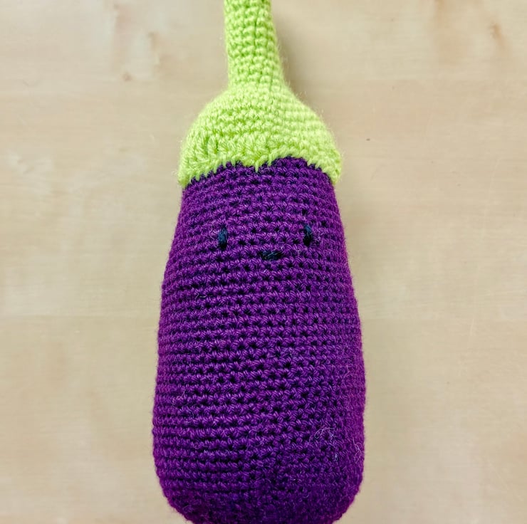 Hand-made, crochet aubergine, perfect for all food fanatics.