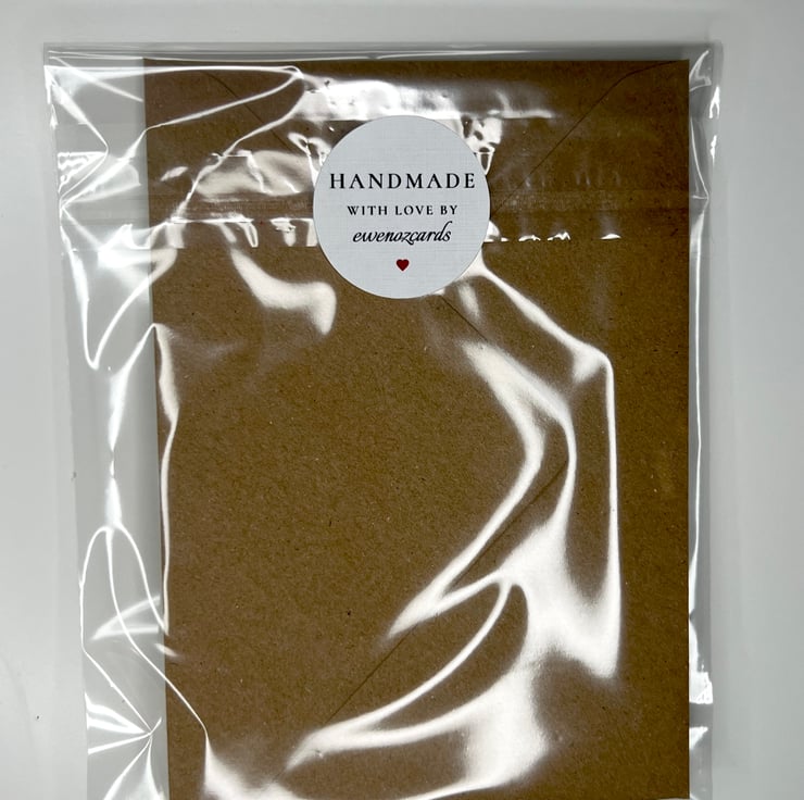 Card comes with envelope all packed in foil and sealed with personalised label.