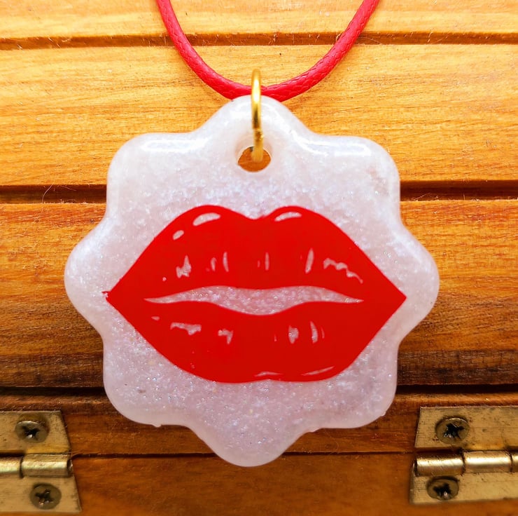 At the heart of this pendant, a pair of bold red lips is embedded, adding a touch of fun, flirtation, and vibrancy. The lips are sculpted in an expressive, slightly exaggerated way, making them a focal point of the design. Their rich red color contrasts beautifully against the cool, pure white of the star, immediately drawing attention and injecting a sense of passion and energy into the piece.