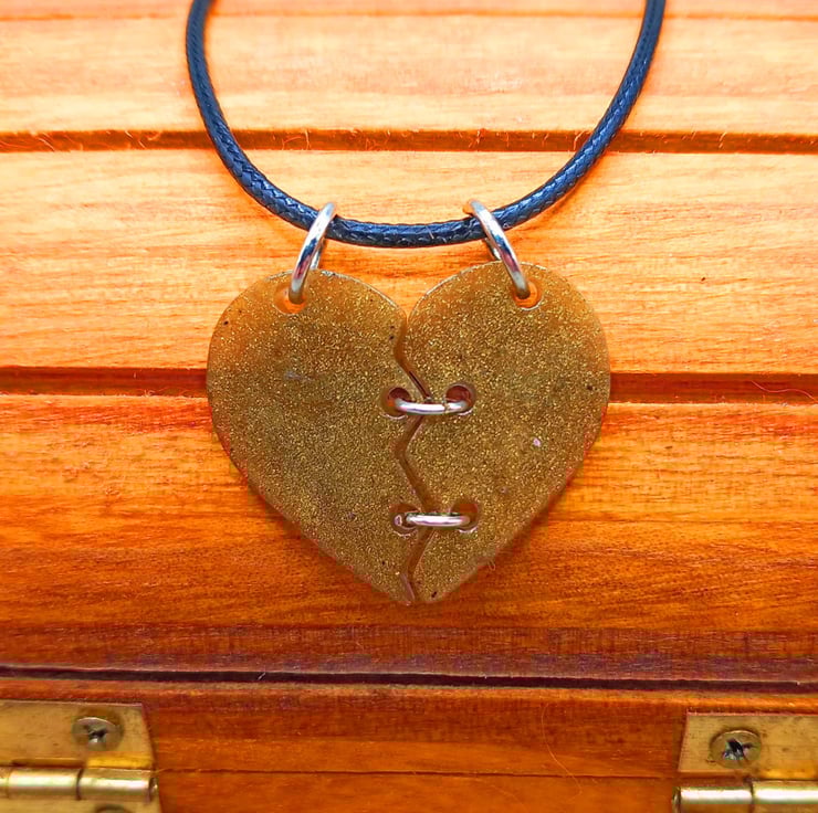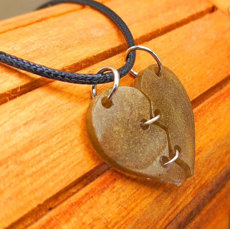 A stunning, artistic piece. The gold resin gives it a touch of elegance and warmth, while the broken heart symbol adds a deeper, emotional element to the design. It s a great piece for someone who appreciates both craftsmanship and the meaning behind their jewellery.