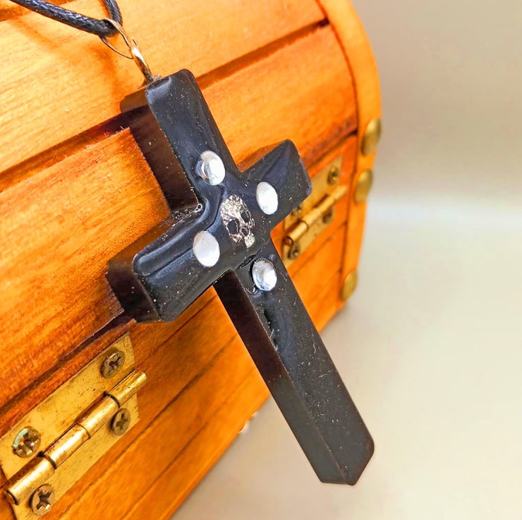 I love skulls. I love all kinds of Gothic jewellery. I love making anything eye-catching that will get people talking! I love thinking what can I make that is different from the norm and stands out from a very crowded market. I try to make things that I would like to wear myself. Getting new silicone moulds and new resins always makes me want to experiment and this is exactly what I’ve done here. It’s bold, it’s vibrant and it can be your’s!