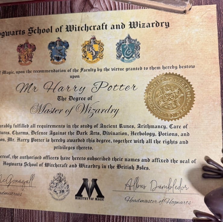 Surprise your favourite witch or wizard with this delightful and enchanting gift—their very own Master of Wizardry diploma! Printed on high-quality parchment-effect paper, this diploma boasts an old-world charm that feels truly magical.