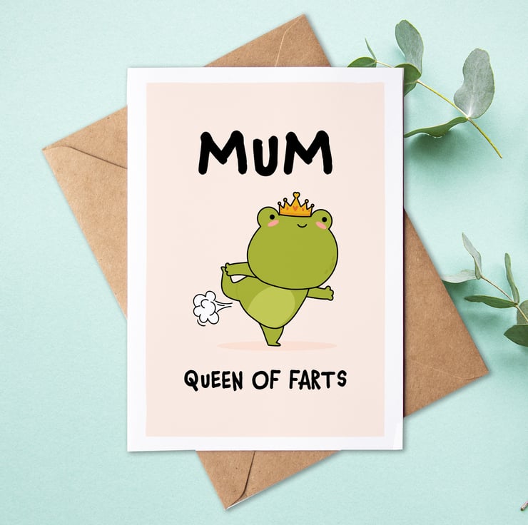 Wish the queen of Mum farts a Happy Birthday or Mother's day with this funny frog doing yoga and letting one slip!