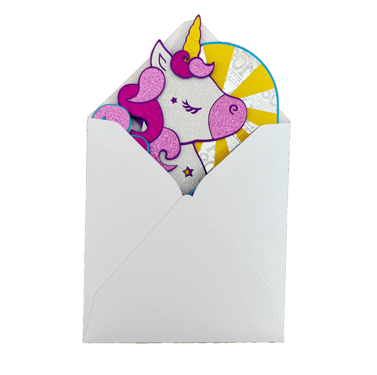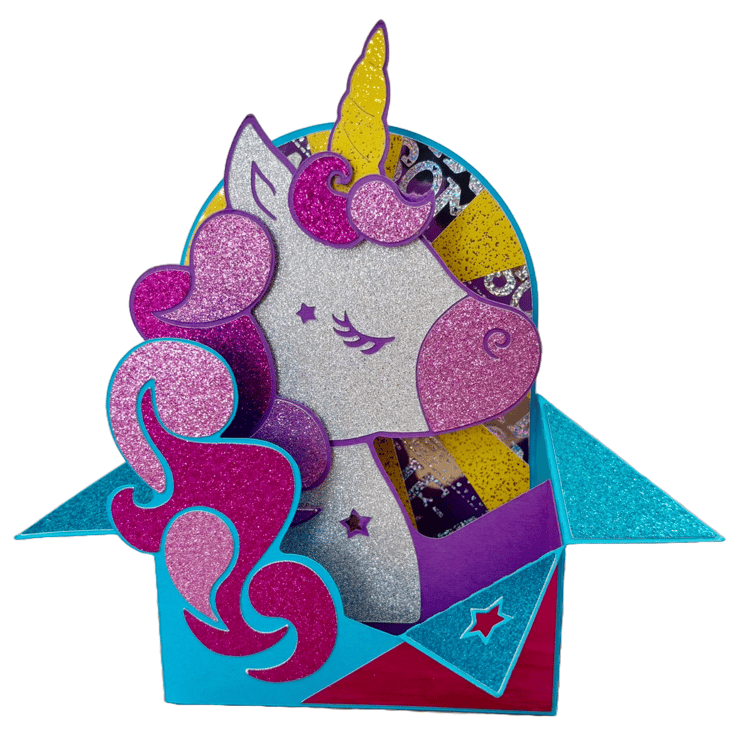 Add a touch of enchantment to any occasion with this stunning unicorn pop-up card!