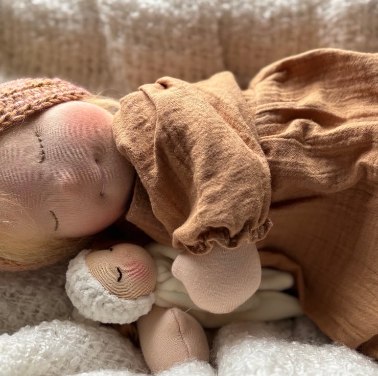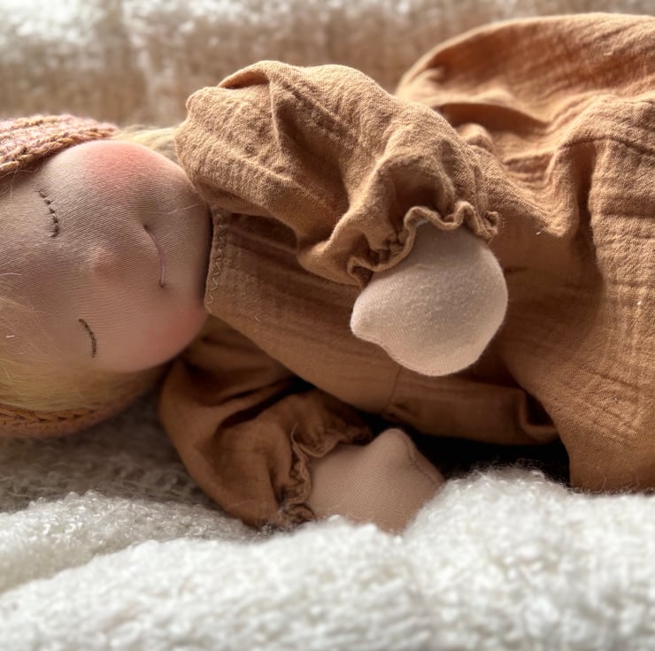 Skin fabric is doll jersey de witte lined with T-shirt fabric for extra strength ,fine weighting sand used for weighting hands ,feet and bottom