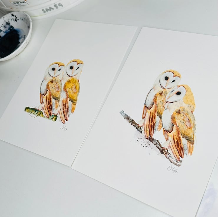 This watercolour print of 'Barn Owl Affinity' is in honour of the beauty and gracefulness these stunning birds add to our world. A fabulous gift showing a special bond. This really was such fun to paint.