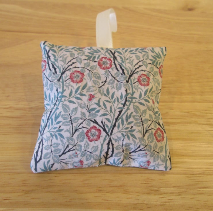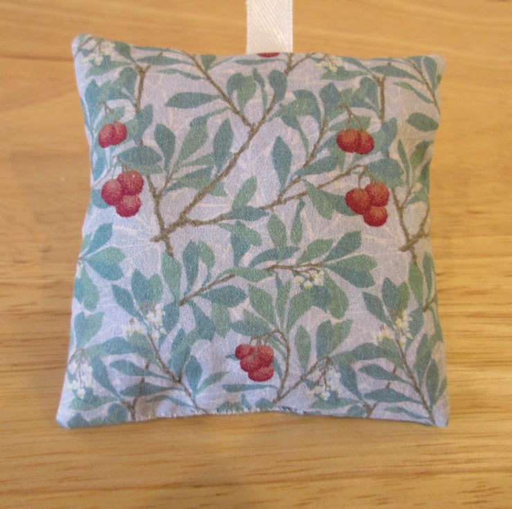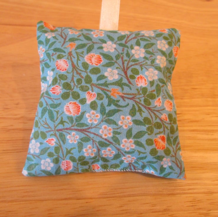 These three lavender bags would make a lovely gift for any friend or relative or maybe just to treat yourself. They are both practical and pretty and could be hung anywhere. Each pillow is made from a different William Morris fabric filled with English lavender and measures approximately three inches square. Each lavender bag has a hanging loop of satin ribbon (2.5 in / 6 cm).