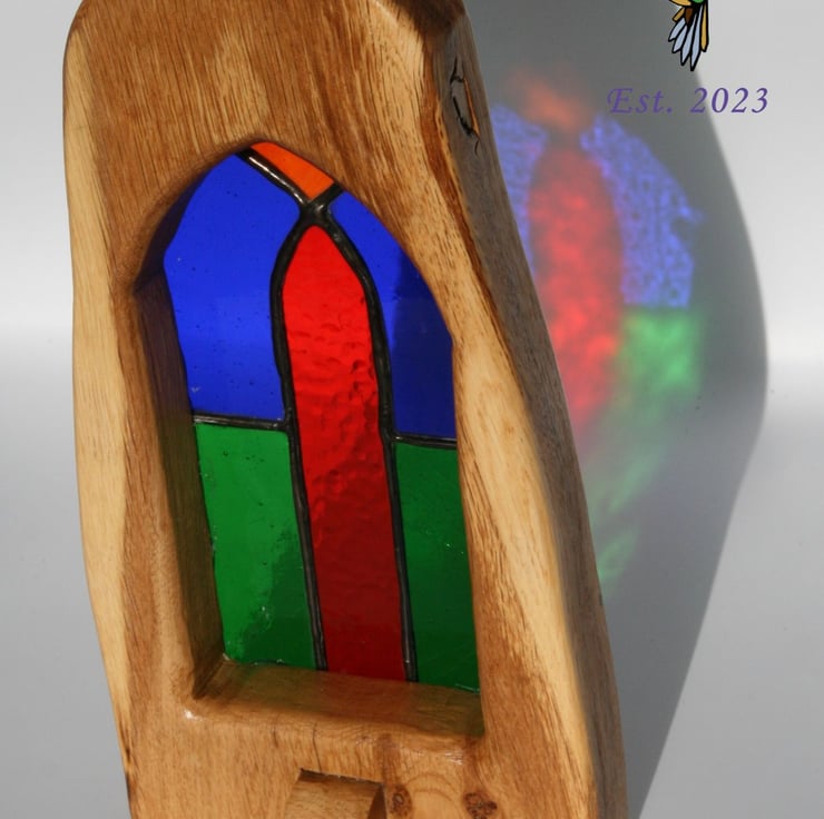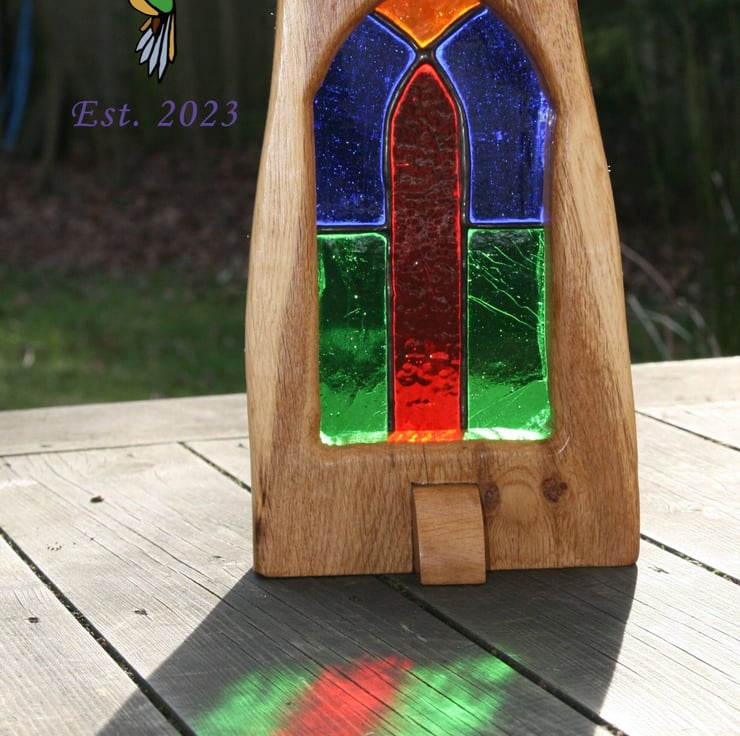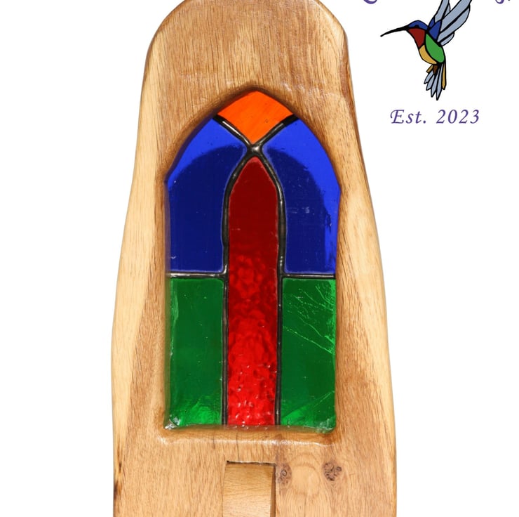 A handcrafted stained glass window art piece. Carefully designed and crafted to add a touch of colour and elegance to your room.