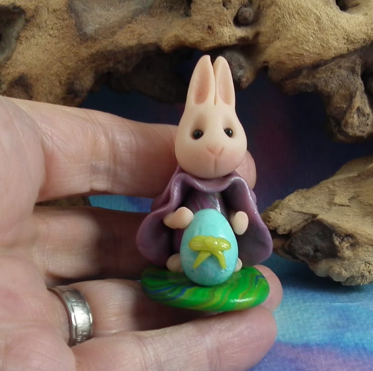 This is a 'one of a kind' creation; entirely handmade without the use of moulds here at my studio on the Sussex Coast. Modelled with Prosculpt polymers, painted with heat set paints before sealing with lacquer, Delia has sparkling black onyx eyes. She is one and a half inches tall.