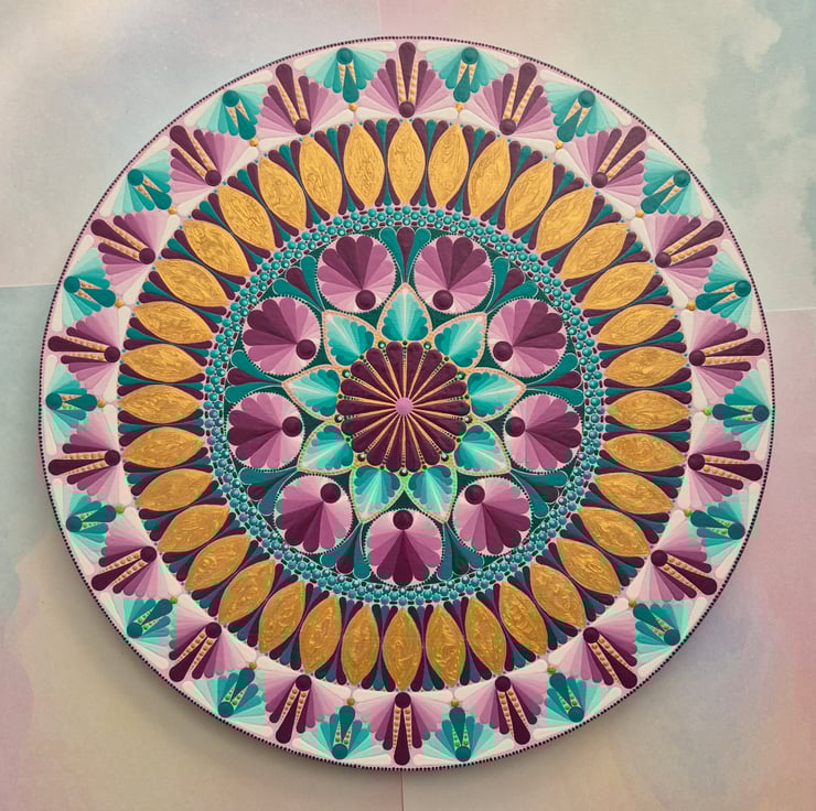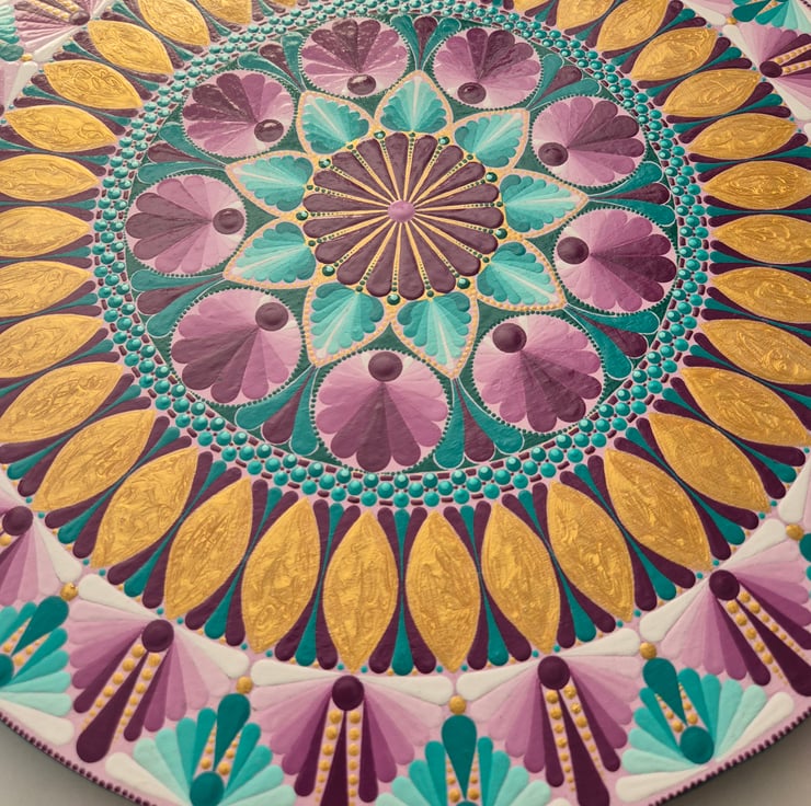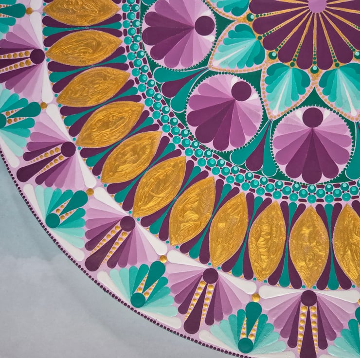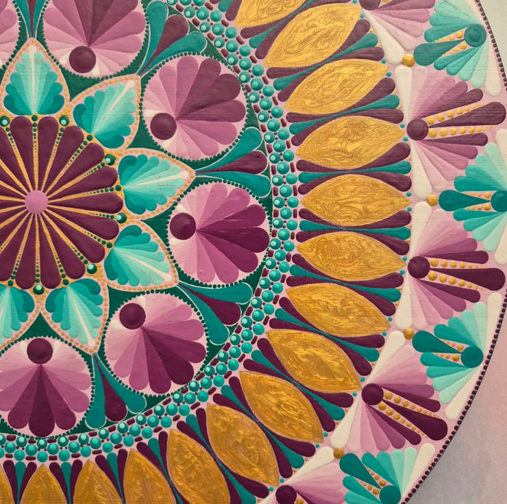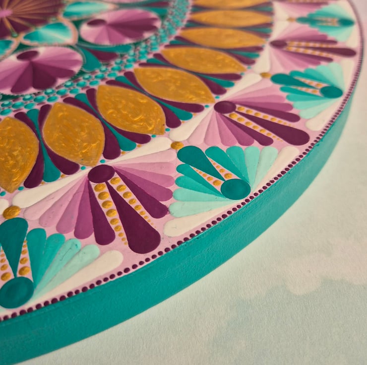 Mandala style design hand painted in acrylics and finished with 3 coats of a satin varnish to give long lasting protection and shine.