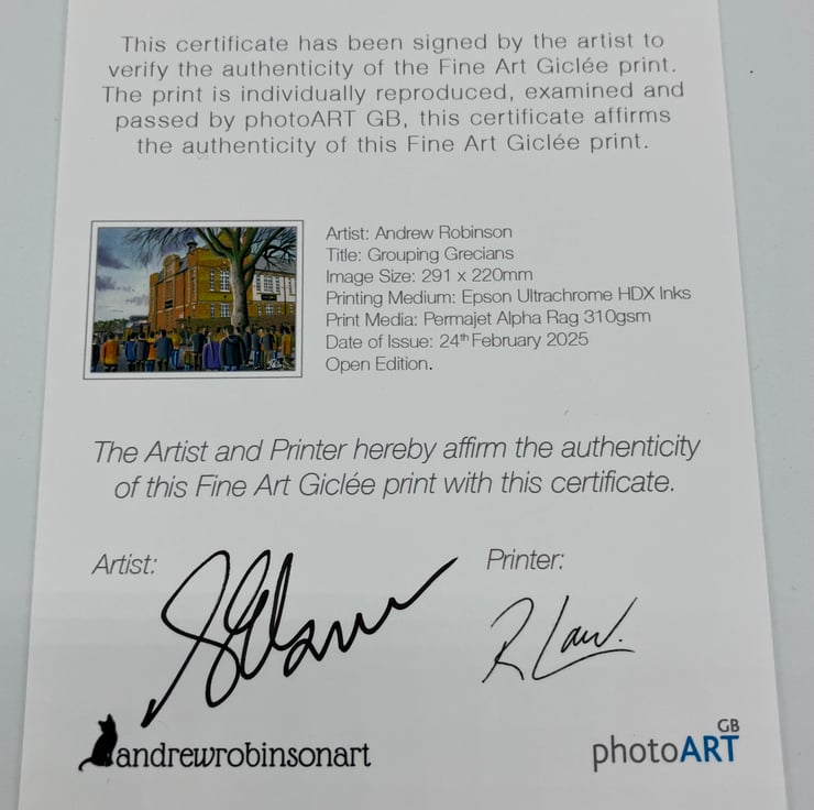 The framed print comes with a 'Certificate of Authenticity' which documents the details of the original painting and the art print. The Certificate of Authenticity is affirmed with a signature from both myself (the artist) and the printer.