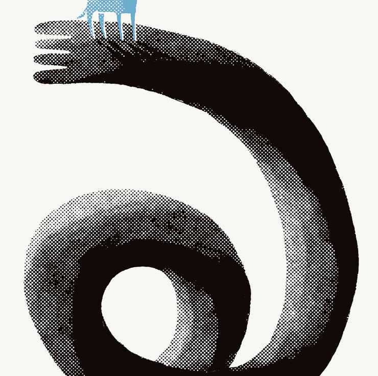 This is the fourteenth print in the 'magic donkey' series, a continuation of my donkey dreamworld theme. The magic donkey prints are perhaps the most dream-like of all my donkey prints, and in this case one his being assisted by a particularly long 'helping hand'.