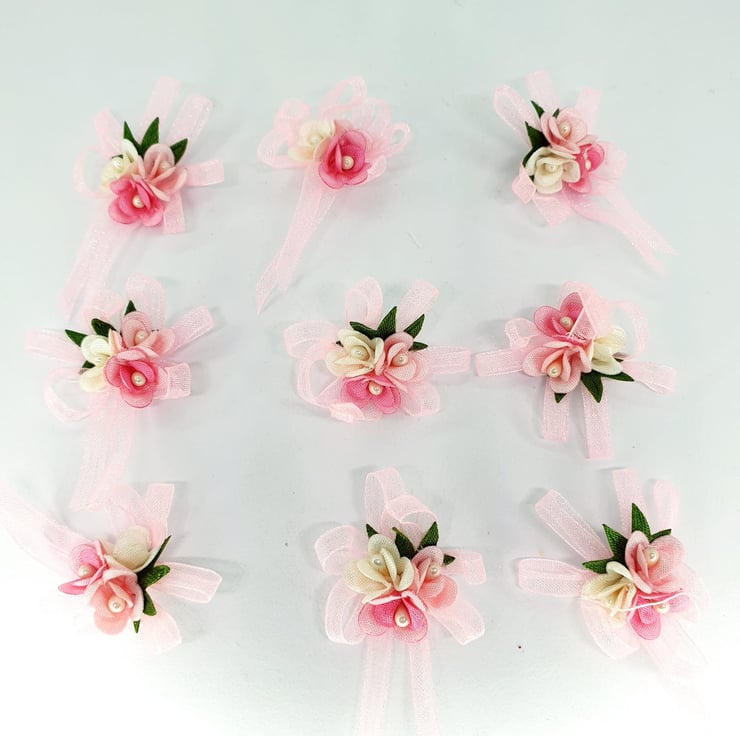 10 Pcs Light Pink Organza Flowers Embellishments 25mm - 30mm