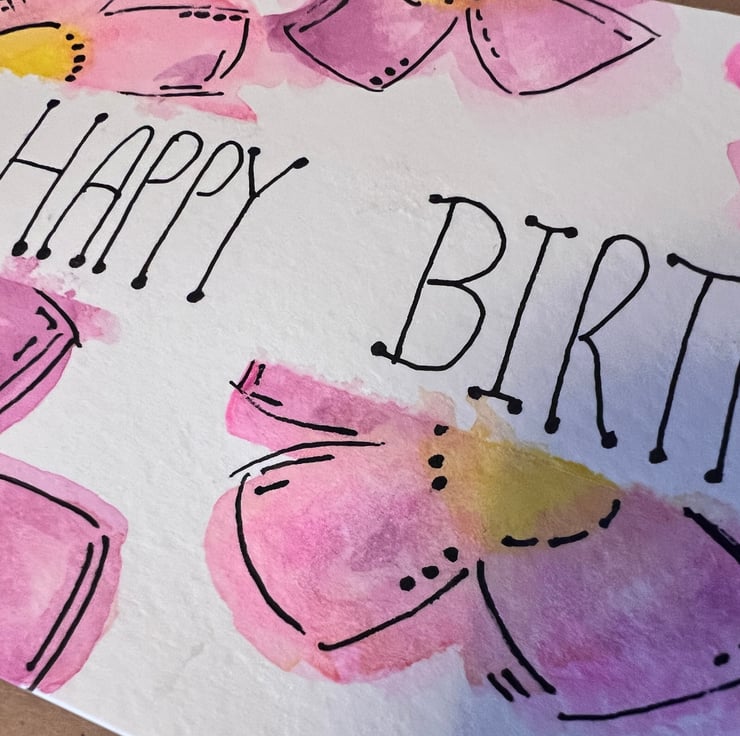 A beautiful floral design using water colour paints on high quality card. This A6 card is sure to bring a smile to the recipient! Sealable envelope included.