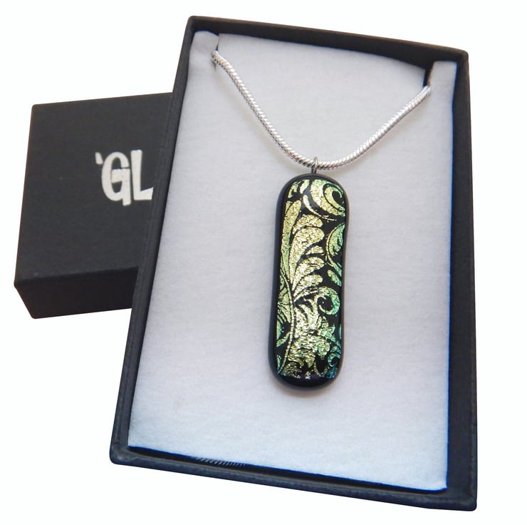 The necklace is supplied in a very nice silver embossed black jewellery box.