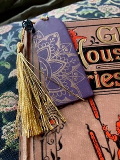 The colours may look slightly different in the photos but I have tried to show the bookmark in different lighting.