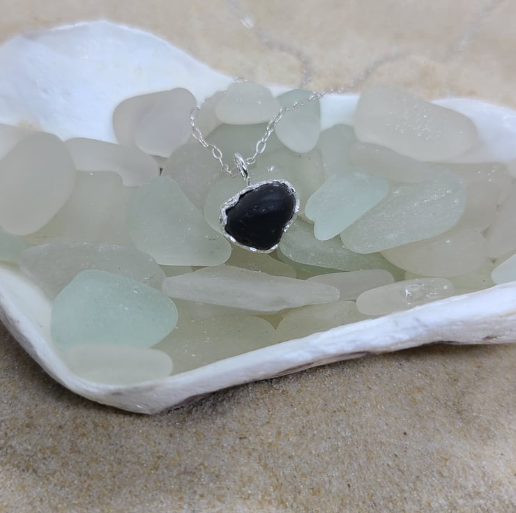 A piece of black pirate glass set in decorative sterling silver. Perfect for a seaglass loving buccaneer!