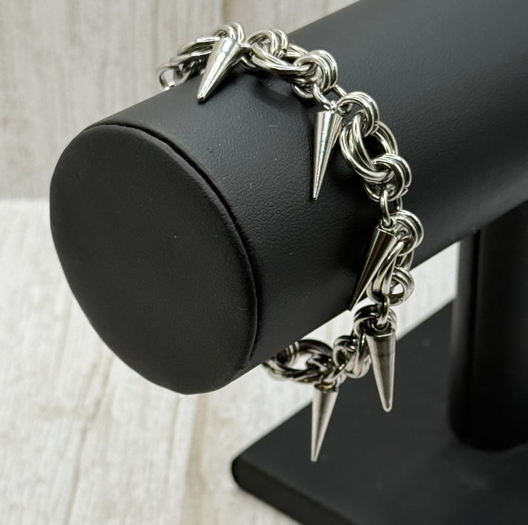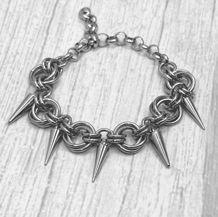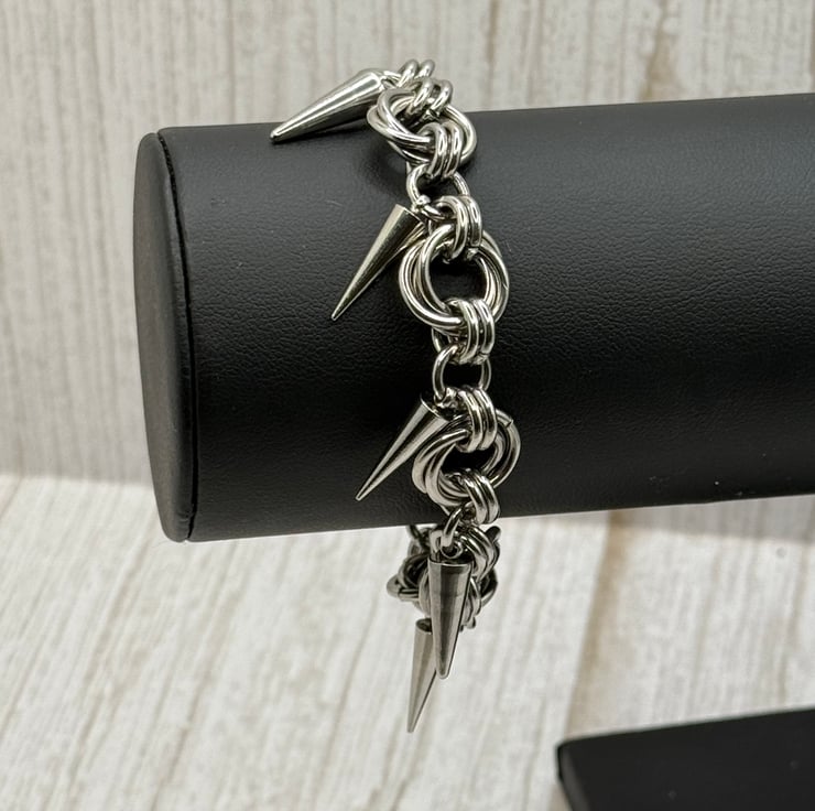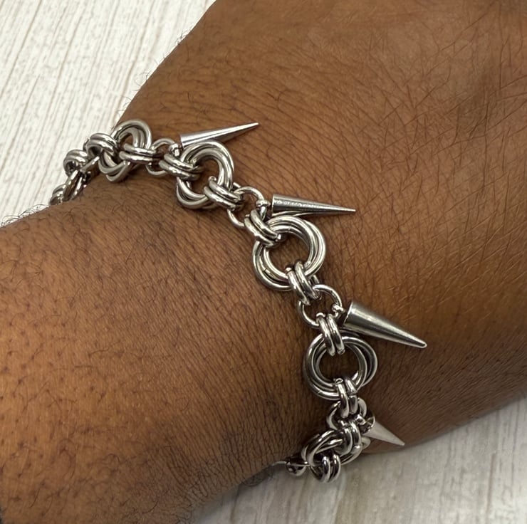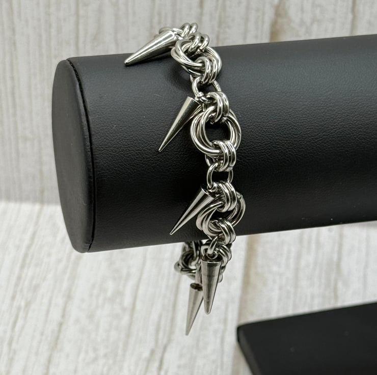 This lovely Mobius chainmail with Cone Bracelet is made with 11mm and 8mm open stainless steel jump rings by me.