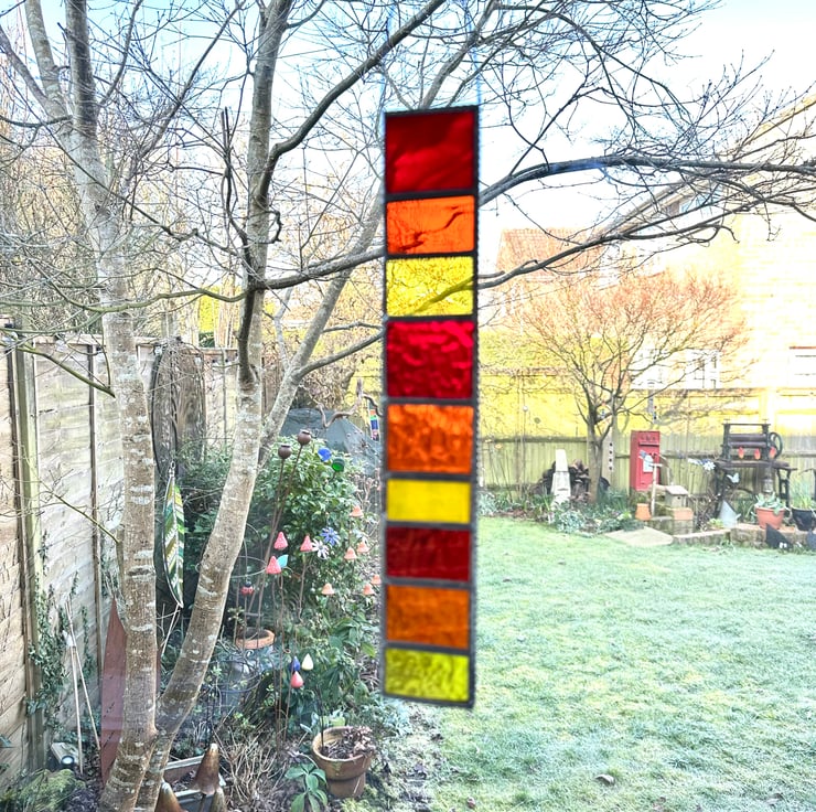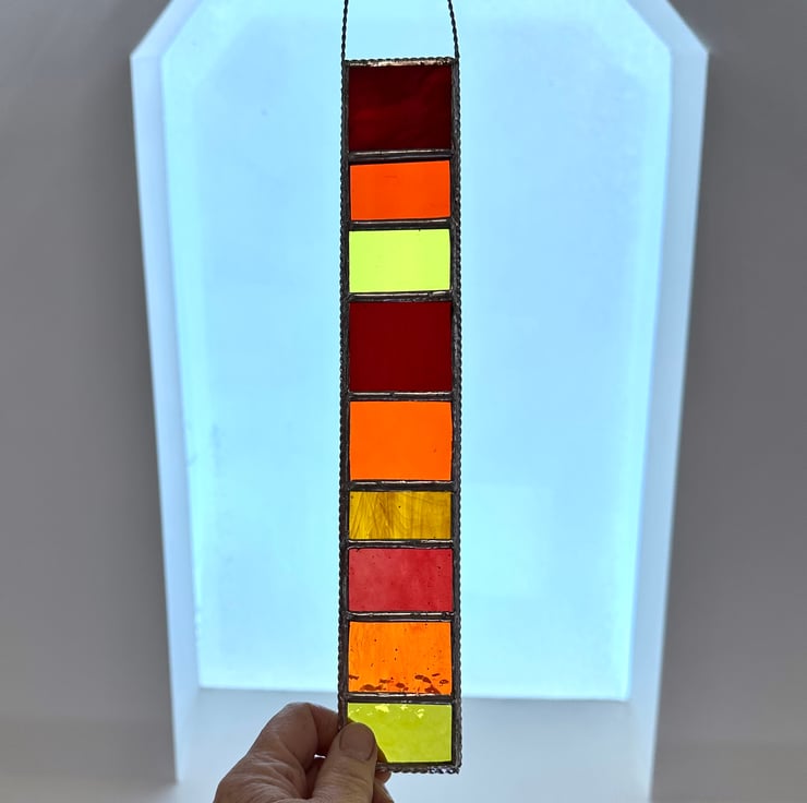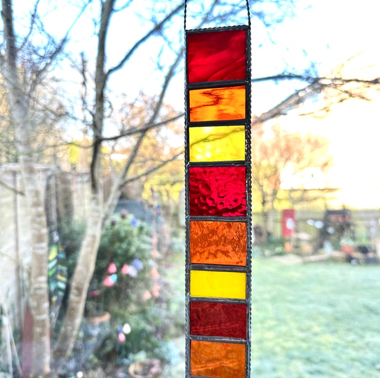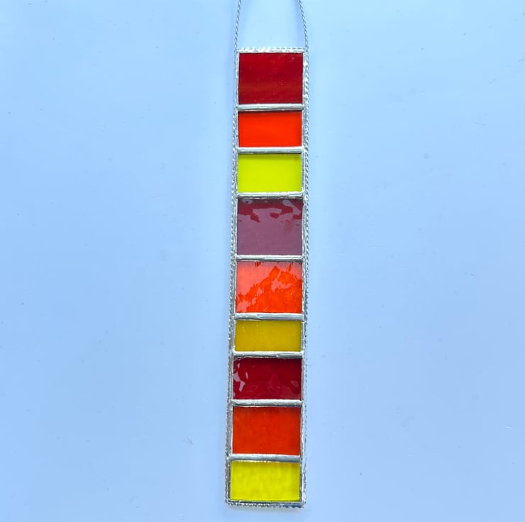This hanger has been made using different shades of red, yellow and orange stained glass.