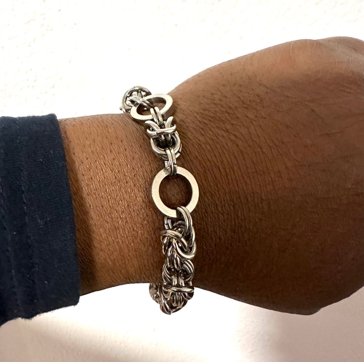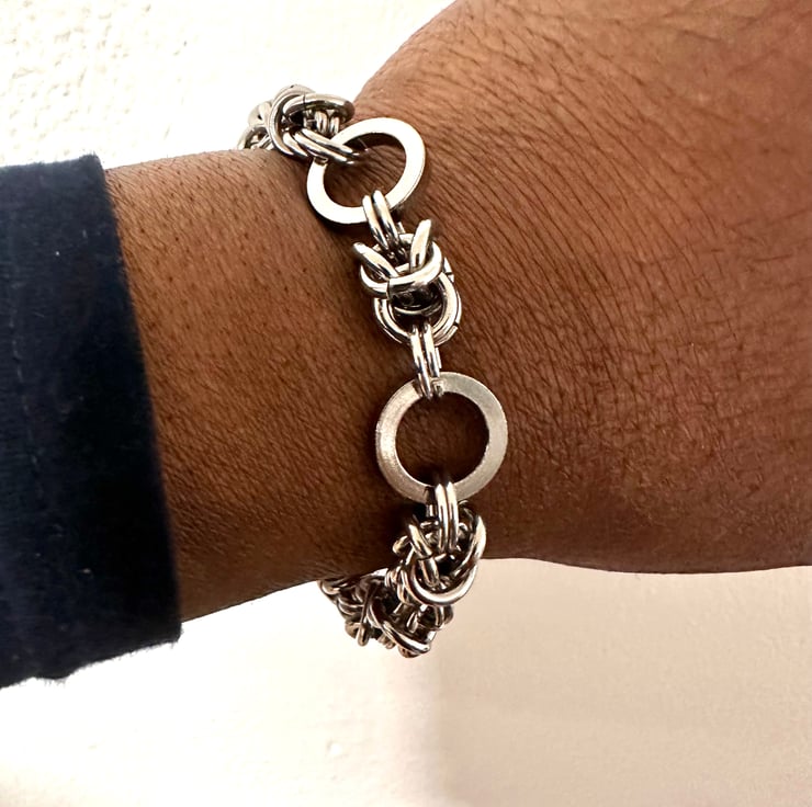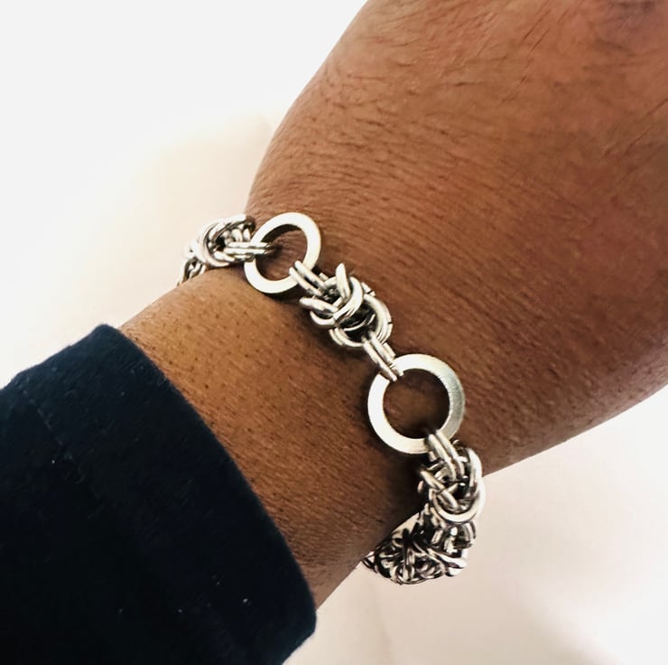 This lovely Mobius chainmail Byzantine Bracelet is made with 15mm Spacer and 8mm open stainless steel jump rings by me.