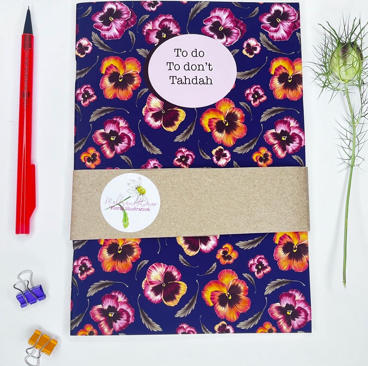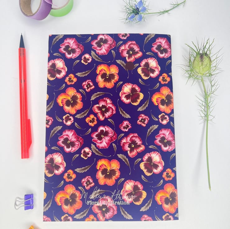 Perfect for noting down all your hopes and dreams or starting that new project these notebooks are handmade in North Somerset from my hand drawn digital designs. I just love creating and drawing beautiful surface patterns to adorn these notebooks.