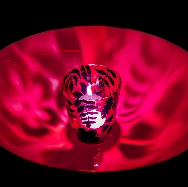 Handmade stained glass tea light candleholder with tropical plant and flowers