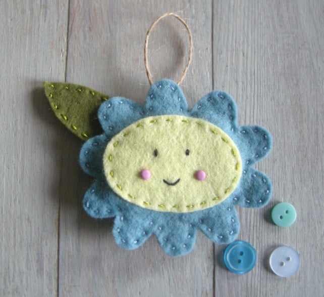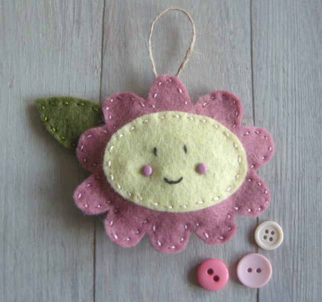 Make two happy felt flower decorations. This sewing kit would make a great gift for Mother's day for a crafter or make them as a gift for a someone special.