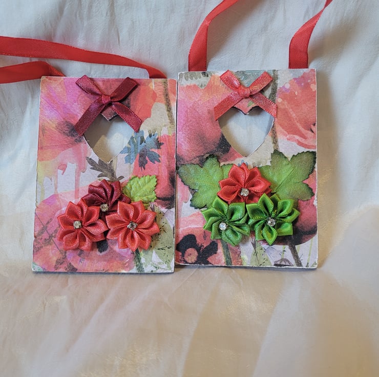 Made on a Wooden MDF Backing with Decopauge and Embellished with Flower