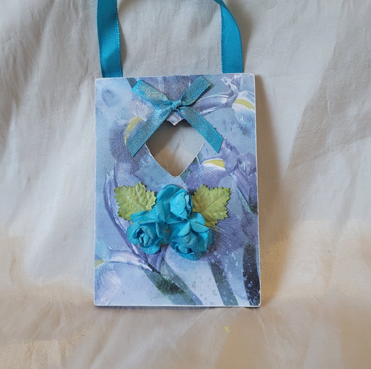 Made on a Wooden MDF Backing with Decopauge and Embellished with Flowers