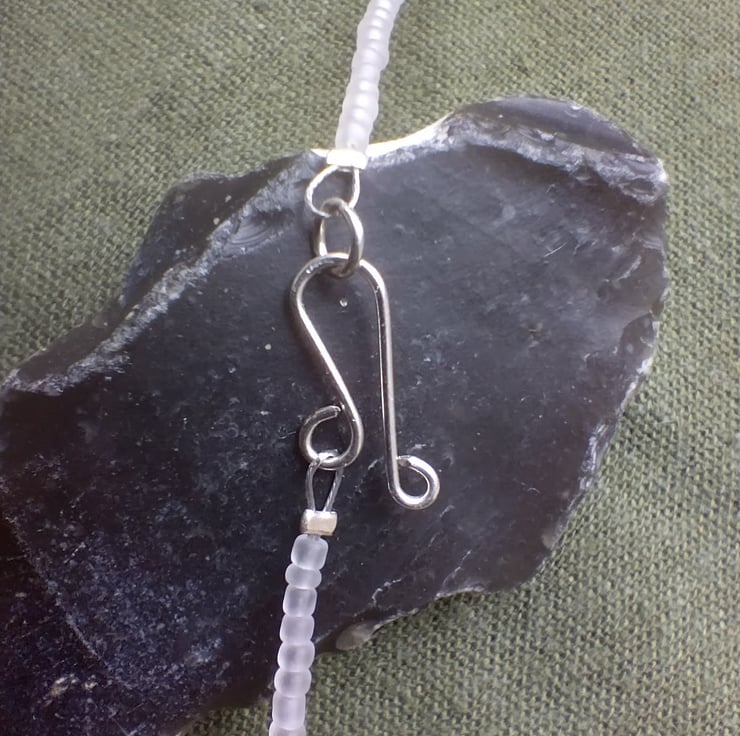 Materials used are: pearls, amethyst, glass, 925 solid sterling silver craft wire. The craft beading wire used to hold the beads is made of steel, and there are two steel crimps.