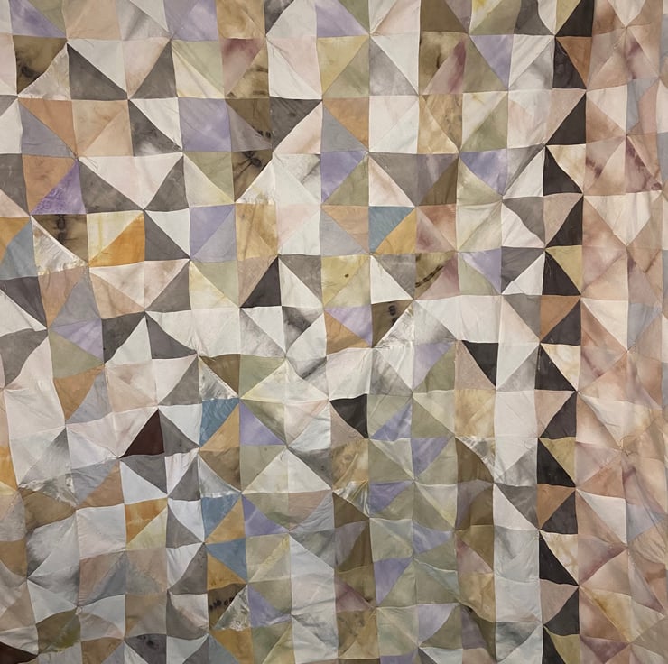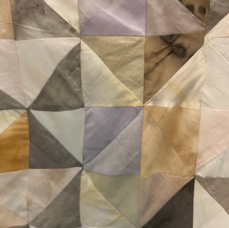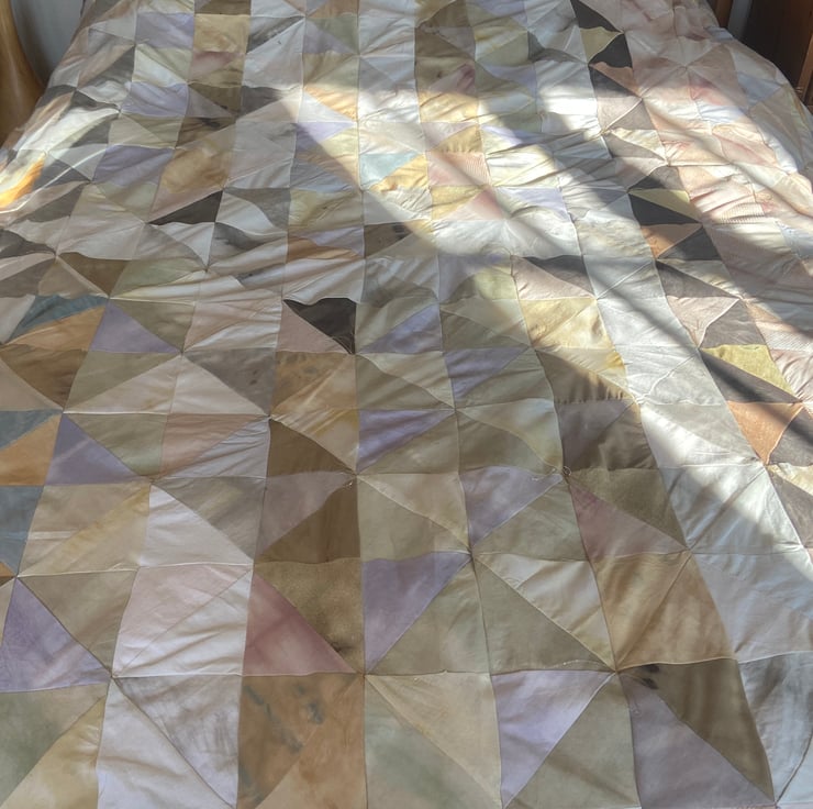 With scraps of white fabric and an enjoyment of dyeing fabric using natural colour, I stitched the pieces together to make a quilt