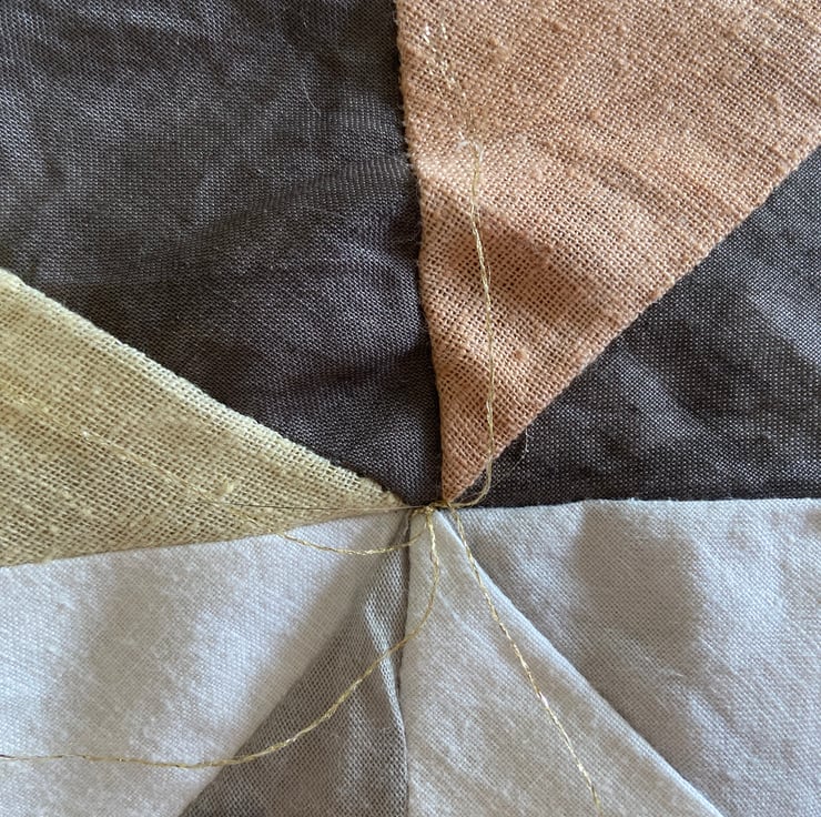 Hand tied with gold thread and backed with cream 100% cotton calico.
