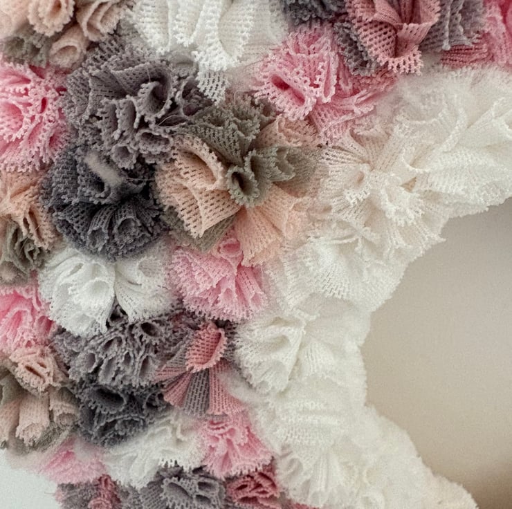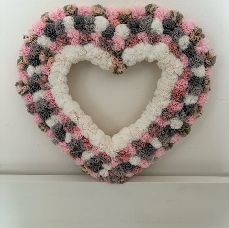 Pretty in pinks decorated Pom Pom heart.