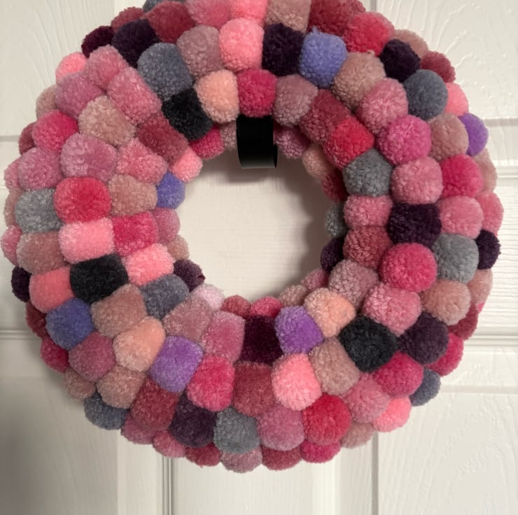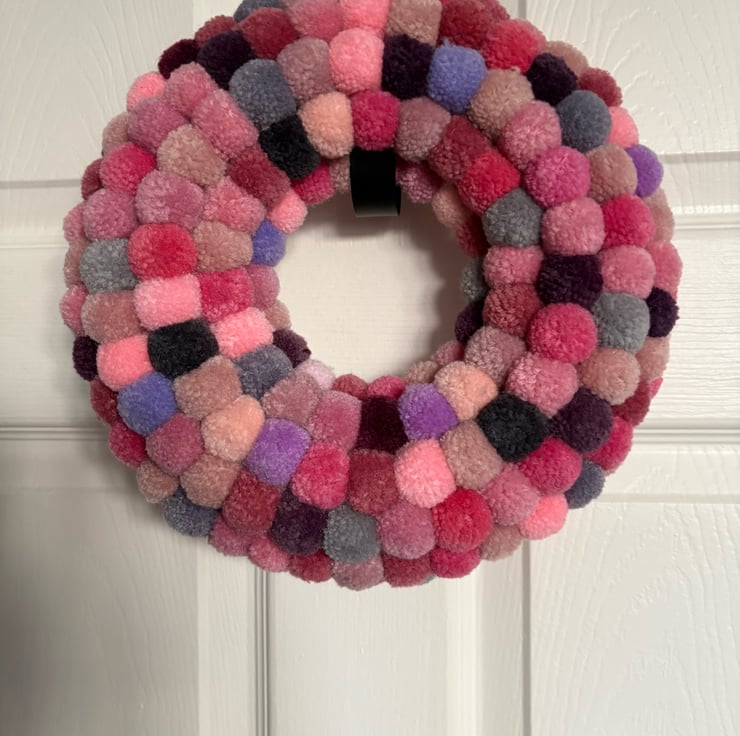 Beautiful pink blush wool Pom Pom wreath.