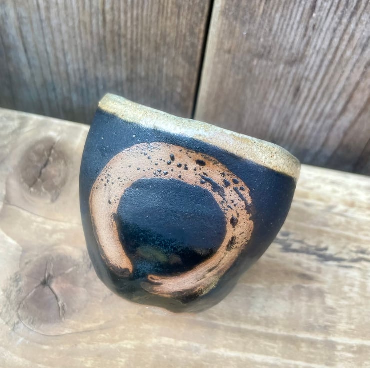 This cup is decorated with the Enso symbol on a black, split matt and gloss background.