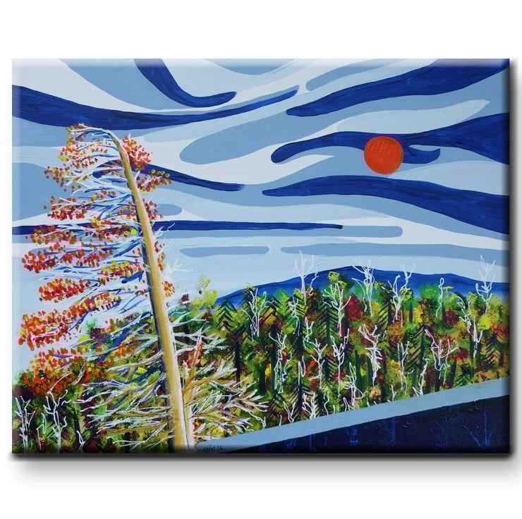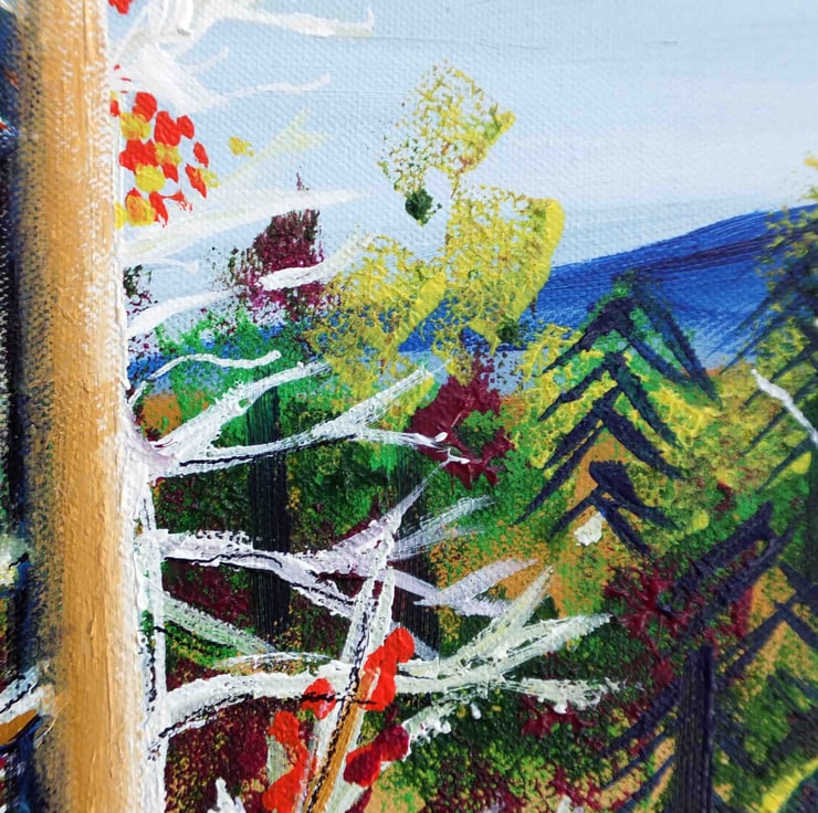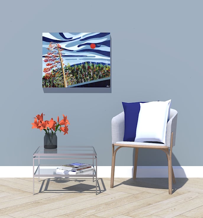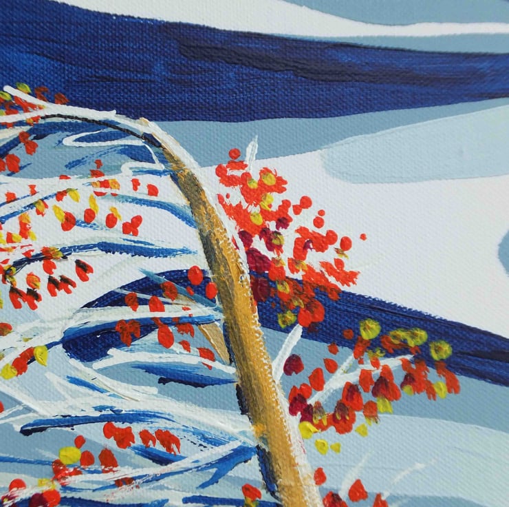 Materials: Painted using acrylics on 11oz, 100% cotton duck weave, triple primed canvas stretched over a wooden box frame (3.5cm deep)