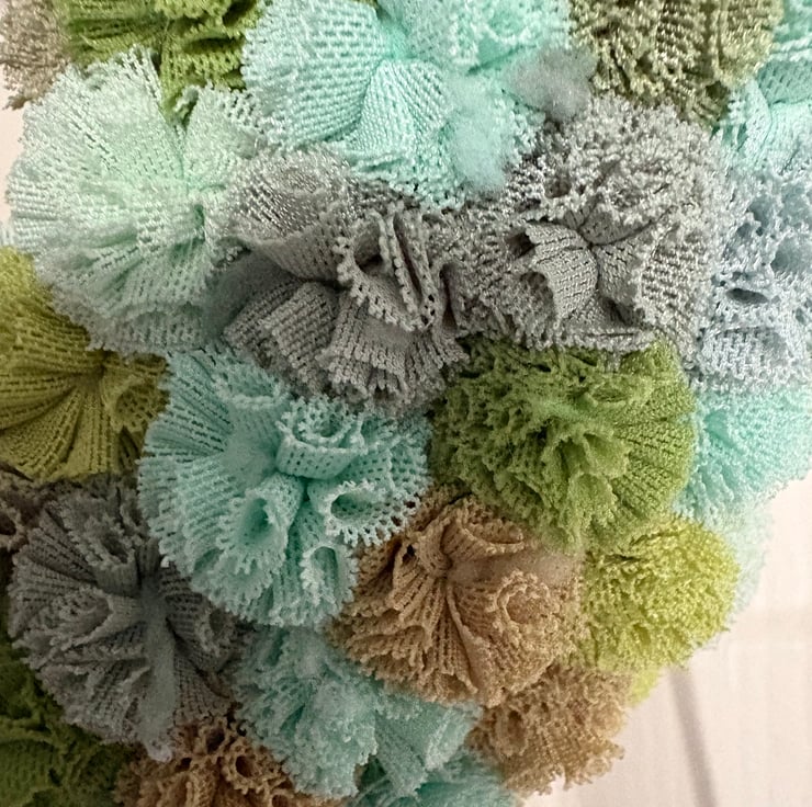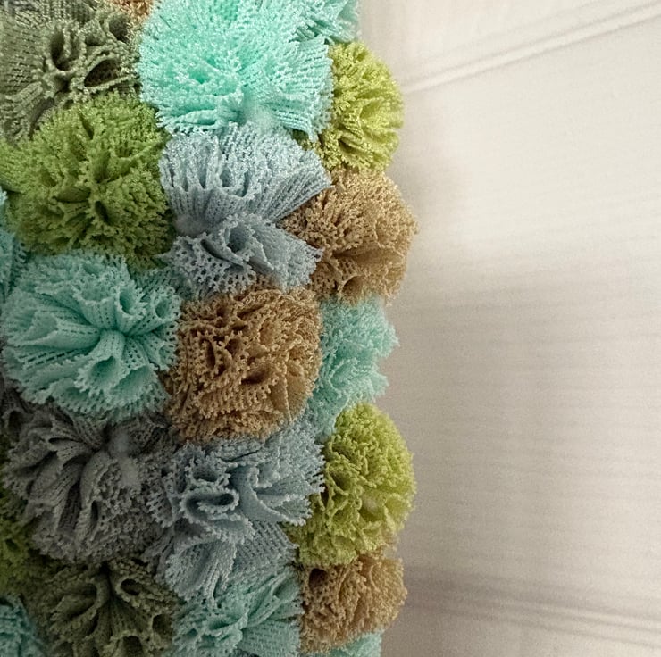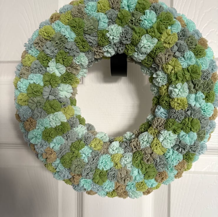 Lovely different shades of green scrunchy Pom Pom wreath.