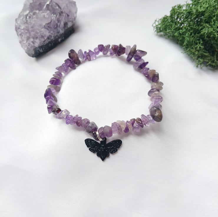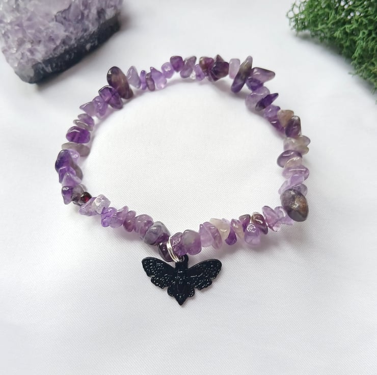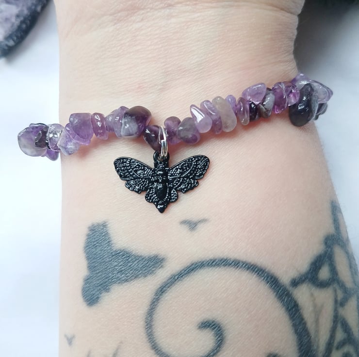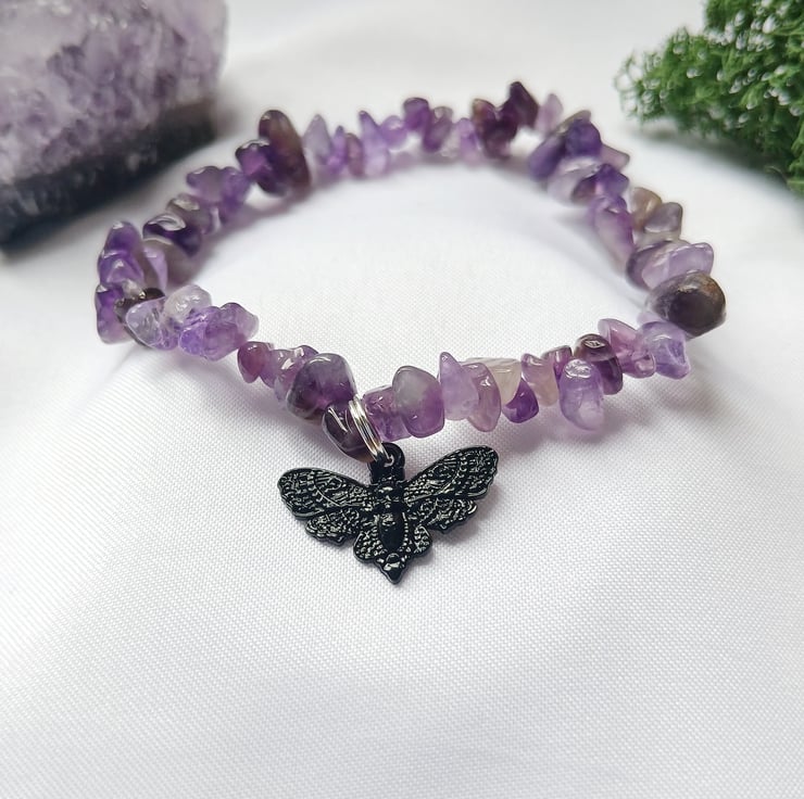 Handmade Amethyst Bracelet with Whimsigoth Death Moth Charm – 20cm