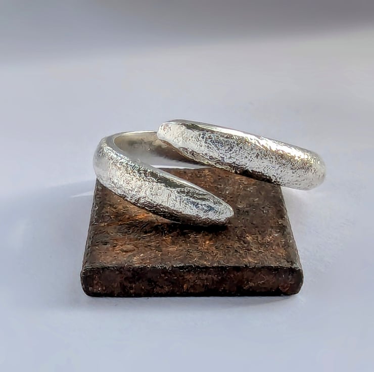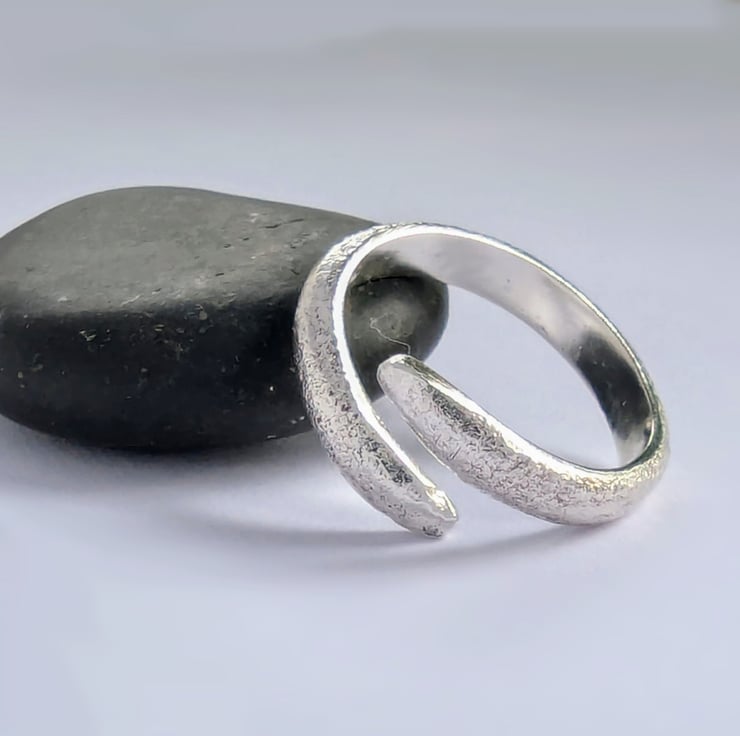 Sterling silver band with a heat flame texture (reticulated) heating the metal until it starts to bubble and breakdown, then immediately take away the flame, The applied texture is unique, tactile and has organic contemporary look.