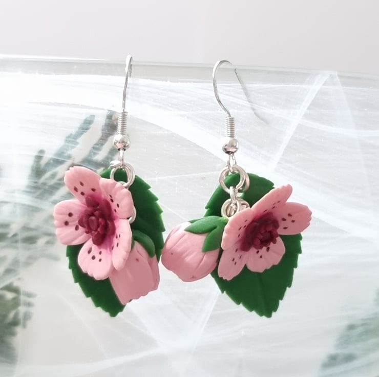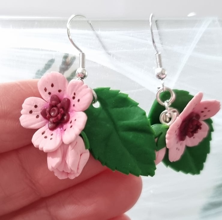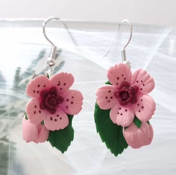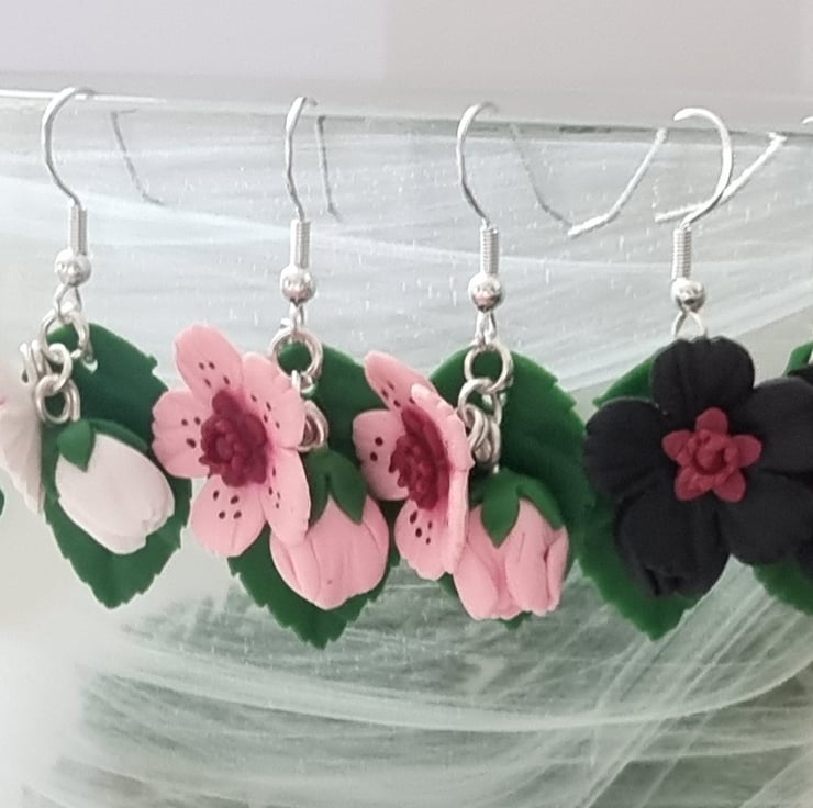 The listing is for a set of pink cherry blossom earrings. White and black are available if you message xx