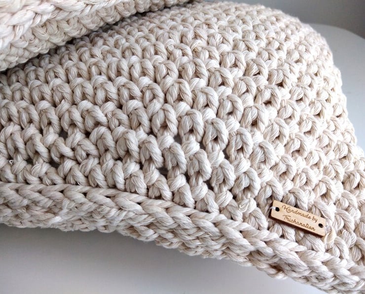 Handmade using a crochet technique with twisted macrmé cotton cord, these are sold as advertised, or made to order in the colour of your choice.