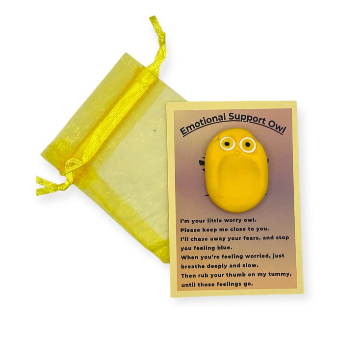 Yellow Worry Stone Owl - Emotional Support Owl Fidget Stone